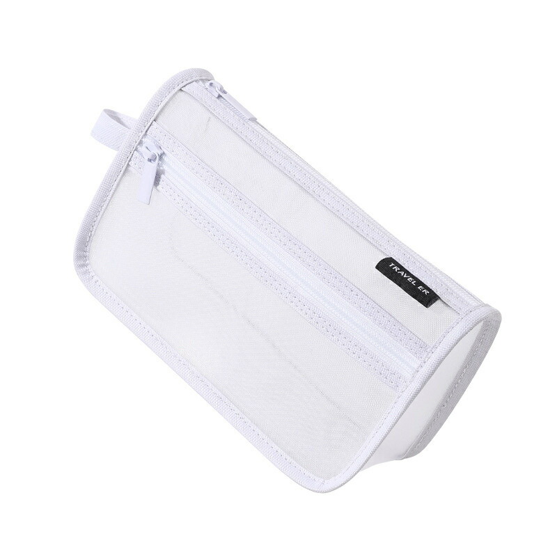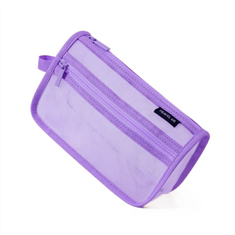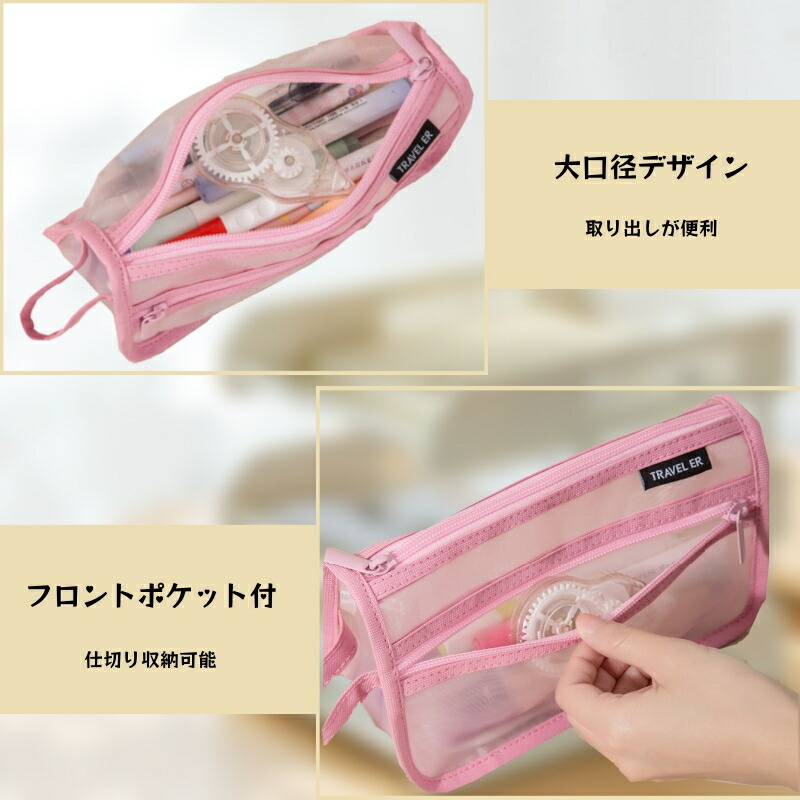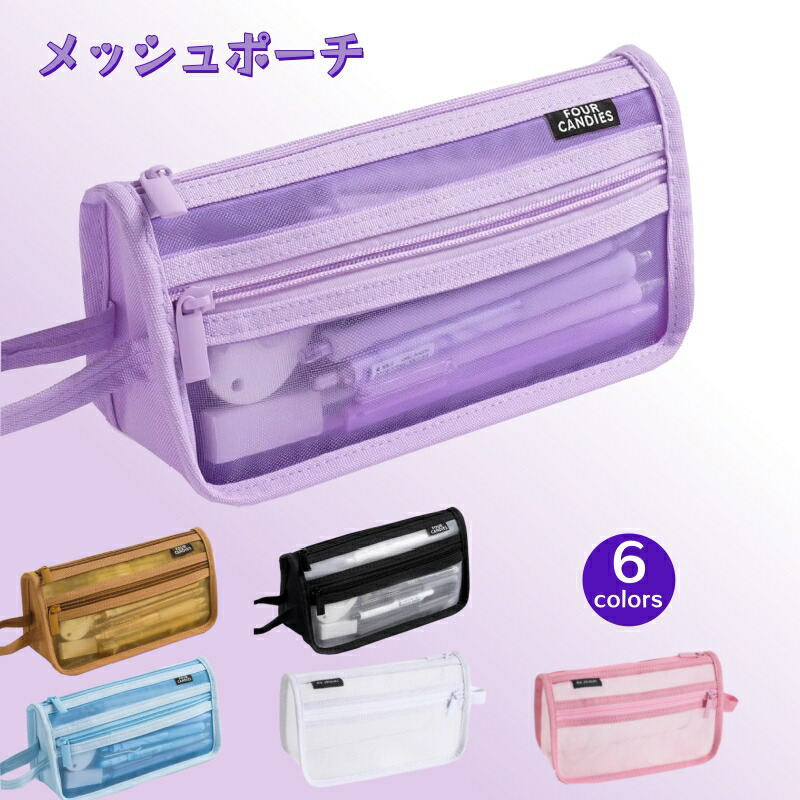 ペンケース 筆箱 透明 メッシュポーチ 日用品雑貨 文房具 手芸 人気 ホワイト ブラック ブルー パープル