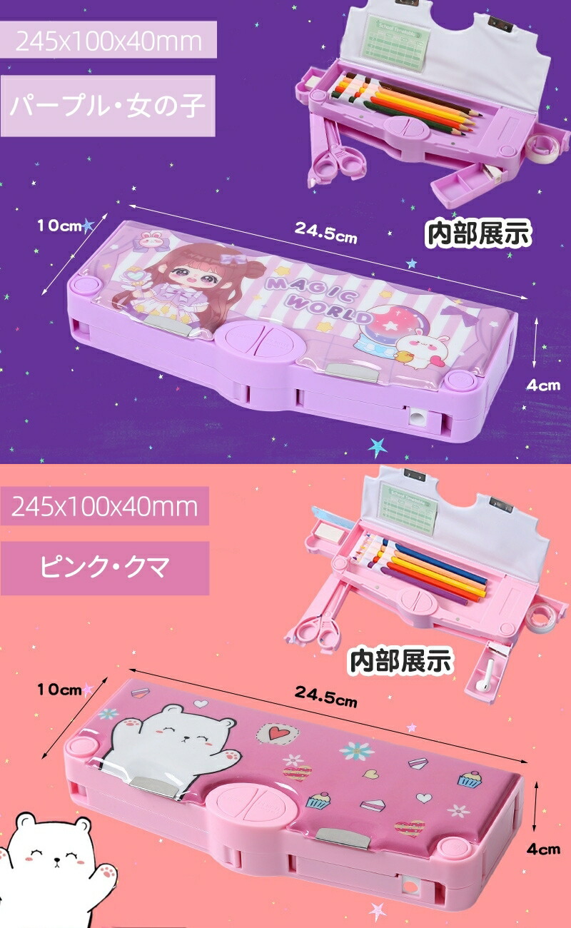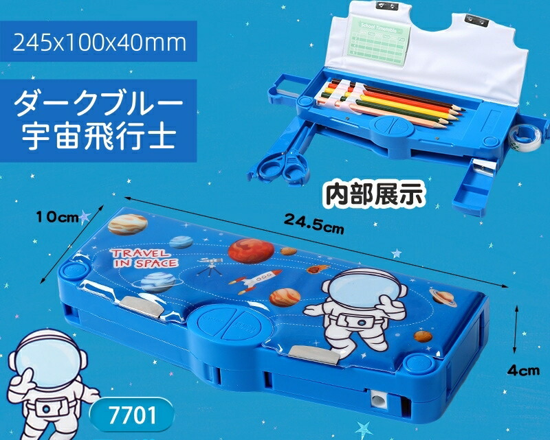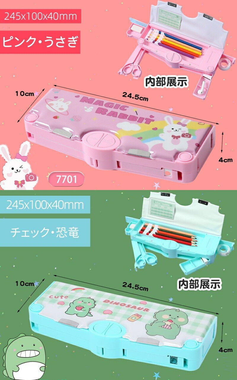 ペンケース 筆箱 箱型 多機能筆箱 鉛 日用品雑貨 文房具 手芸 人気 グリーン・恐竜 ピンク・ユニコーン ネイビー・宇宙飛行士 ブルー・ネコ パープル・クマ ブラック・宇宙飛行士 ダークブルー・宇宙飛行士 ピンク・うさぎ チェック・恐竜 パープル・女の子 ピンク・クマ