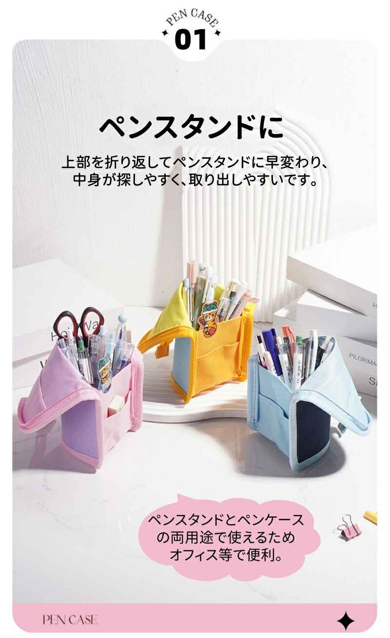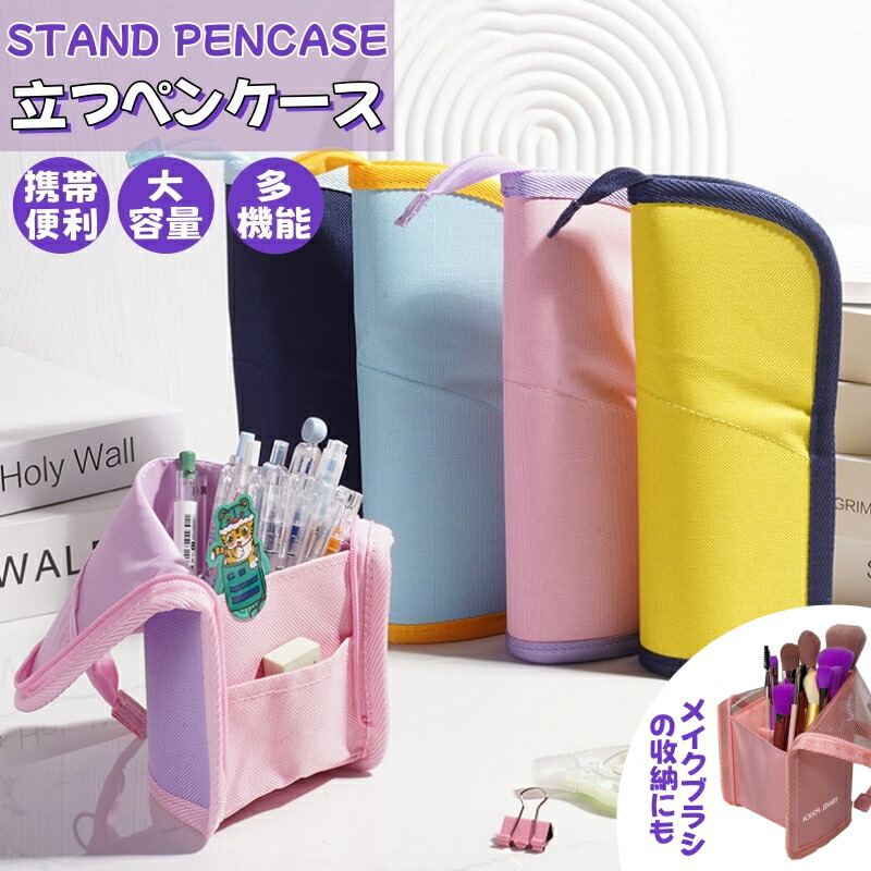筆箱 ペンケース ペンスタンド 立つ 文房具 事務用品 筆記具 ペンケース 人気 イエロー ピンク ブルー ネイビー パープル