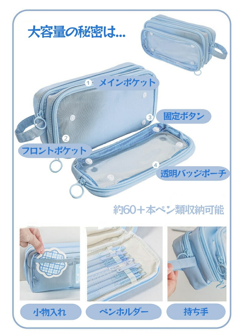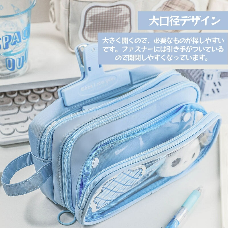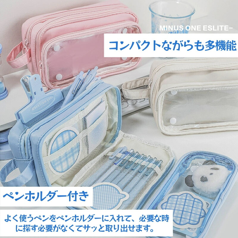 筆箱 大容量 ペンケース クリア バッ 日用品雑貨 文房具 手芸 通販 グリーン ブラウン ベージュ ブルー ブラック