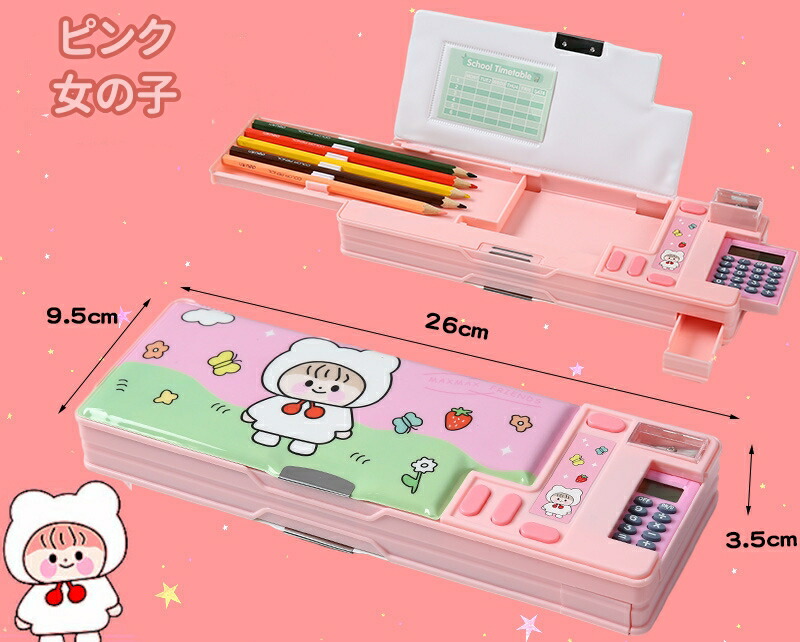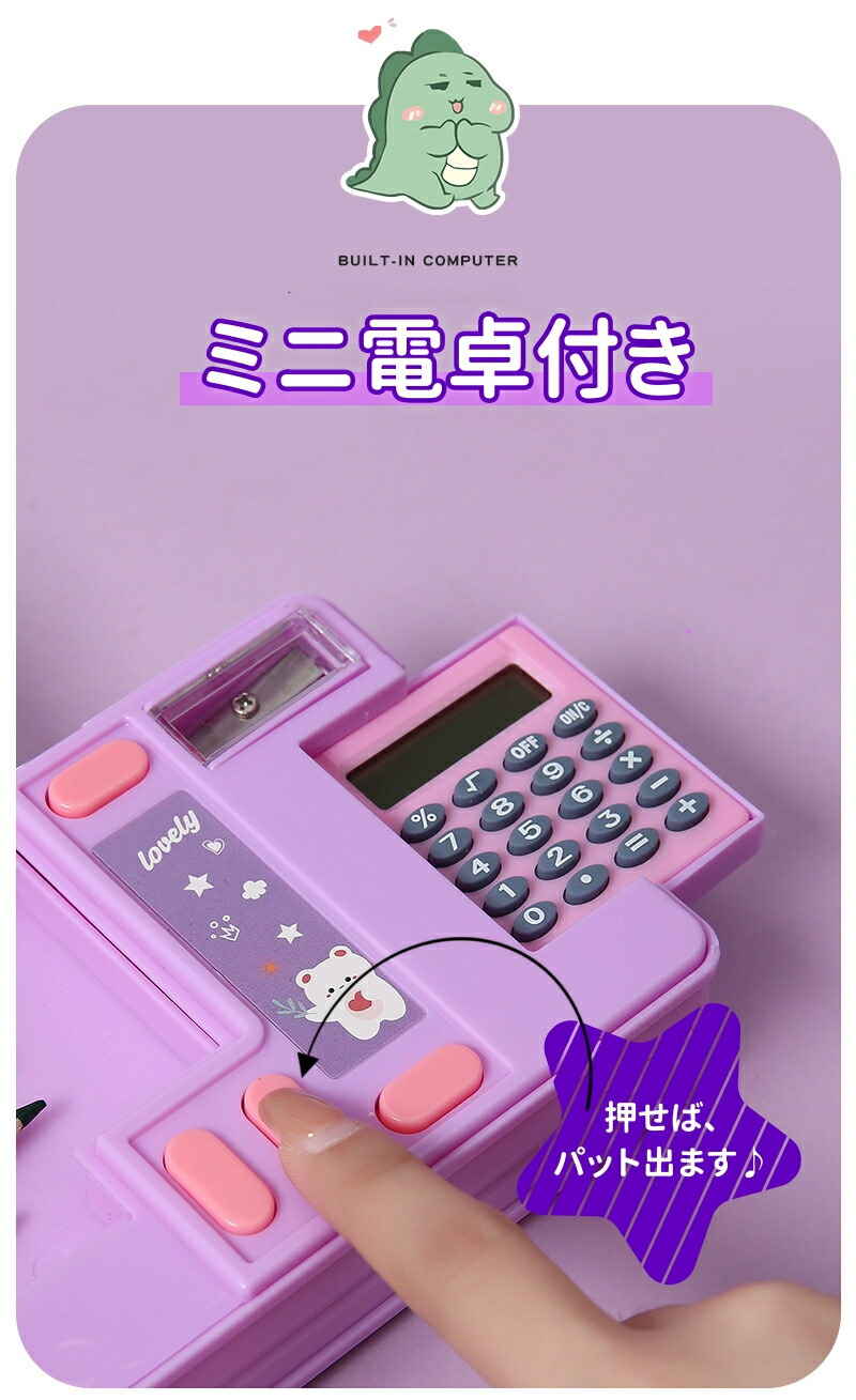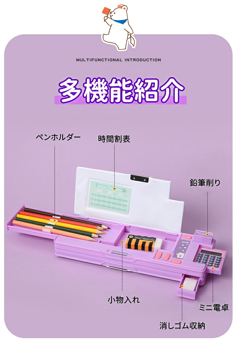 筆箱 小学生 大容量 ペンケース 電卓 文房具 事務用品 筆記具 ペンケース 特集 ネイビー・宇宙飛行士 ダークブルー・宇宙飛行士 ブラック・宇宙飛行士 ピンク・ユニコーン ピンク・女の子 パープル・クマ