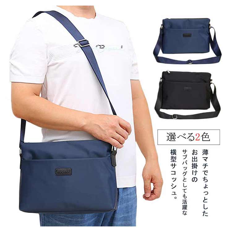 通勤 スリム バッグ A4サイズ 横型 サコッシュ メンズ 斜め掛け 薄マチ お出掛け ビジネス 旅行 大容量 コンパクト ショルダーバッグ スマホ収納