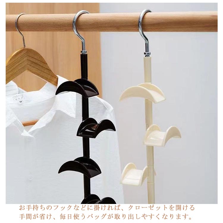 お手持ちのフックなどに掛ければ、クローゼットを開ける手間が省け、毎日使うバッグが取り出しやすくなります。