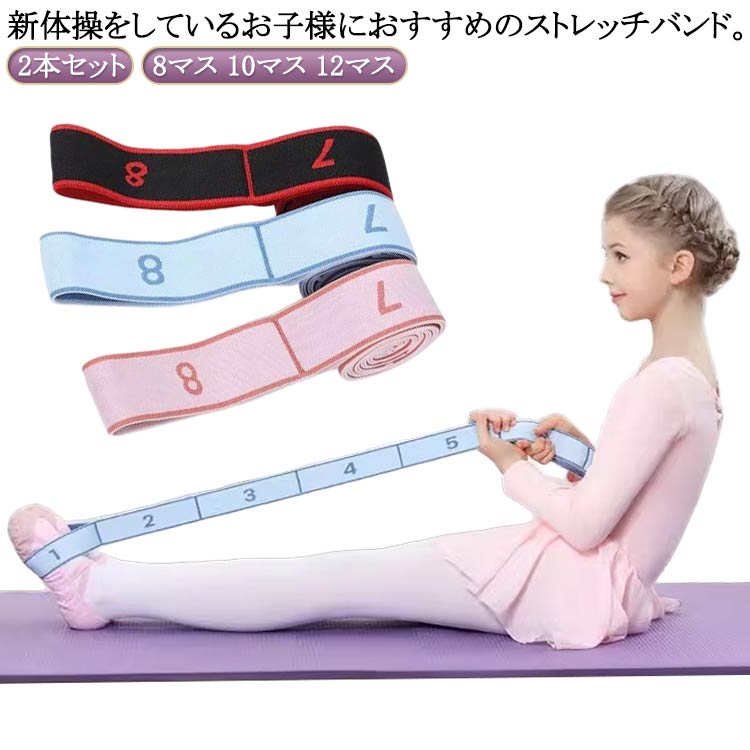 ストレッチバンド バレエ バンド ヨガ スポーツ アウトドア 通販 2本セットピンク 2本セット青 2本セット黒 8マス 10マス 12マス