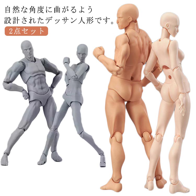 デッサン人形 2点セット 男性 女性 文房具 事務用品 画材 その他 特集 グレー(男+女2点セット) 肌色(男+女2点セット)