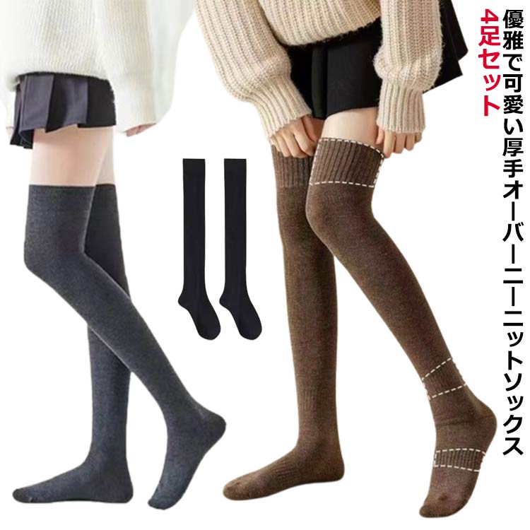 4足セット あったか 厚手 暖かい 靴 レディース 靴下 レッグウェア 靴下 豊富 ブラック ダックグレー ブラウン