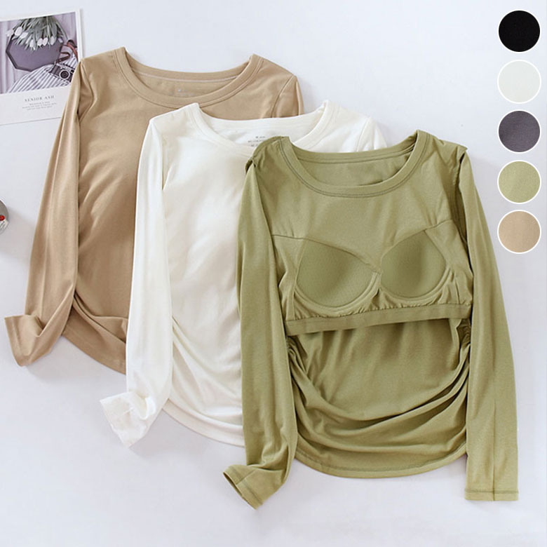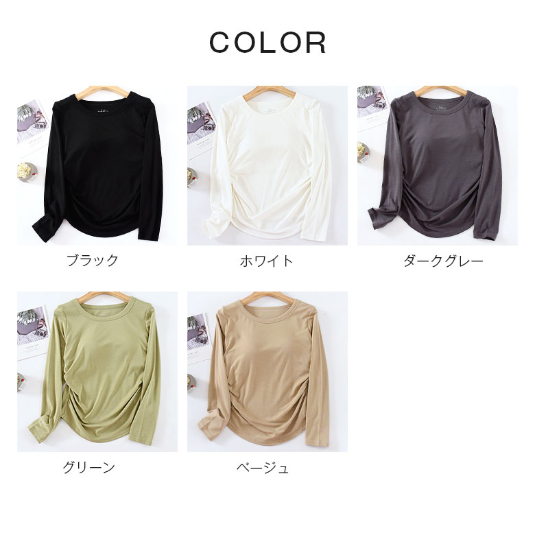 2A17 パット付き 長袖 Tシャツ トップス Tシャツ カットソー 通販 M L XL ブラック ホワイト ダークグレー グリーン ベージュ