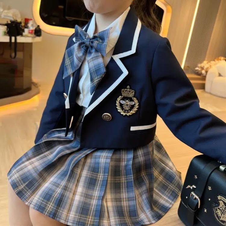 【商品内容】ジャケット+チェック柄スカート+シャツ3点セット。