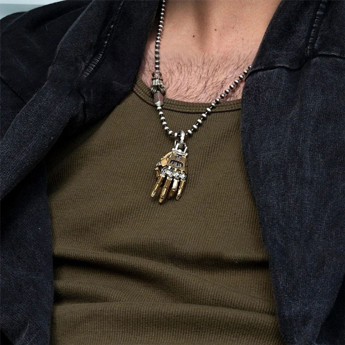 ネックレス ペンダント メカニカルハンドペンダントネックレス ロボットハンド メカニカルハンド 可動式 指の関節 ハンドチャーム 機械的 可動フィンガージョイントロボットハンドチ ロボット