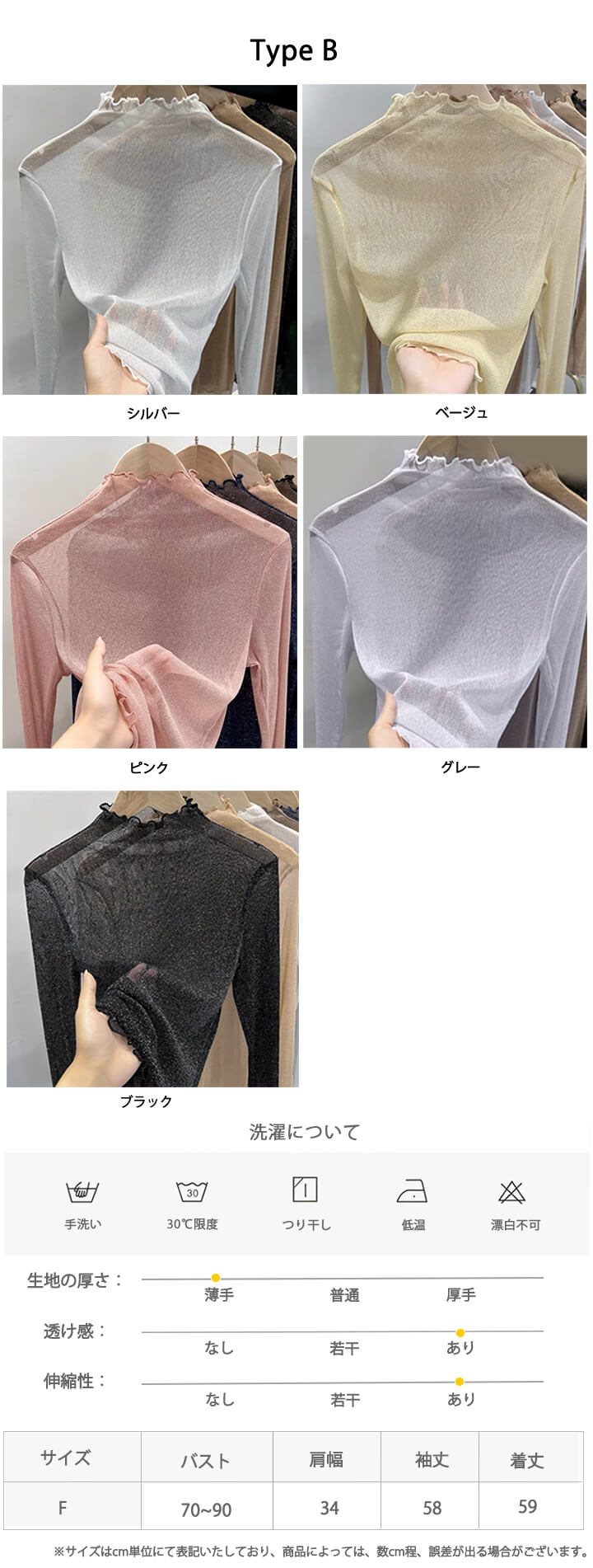1A22 ラメ入り ハーフネック シア レディースファッション 特集 Type A(グレー) Type A(ピンク) Type A(ベージュ) Type A(ブラック) Type B(シルバー) Type B(ベージュ) Type B(ピンク) Type B(グレー) Type B(ブラック)