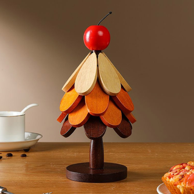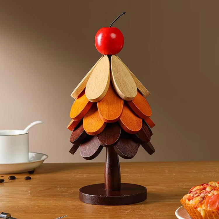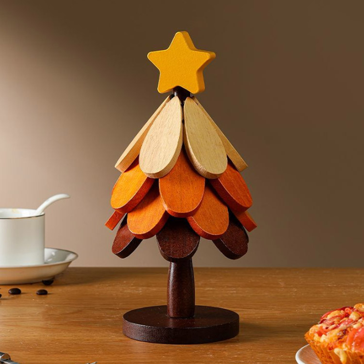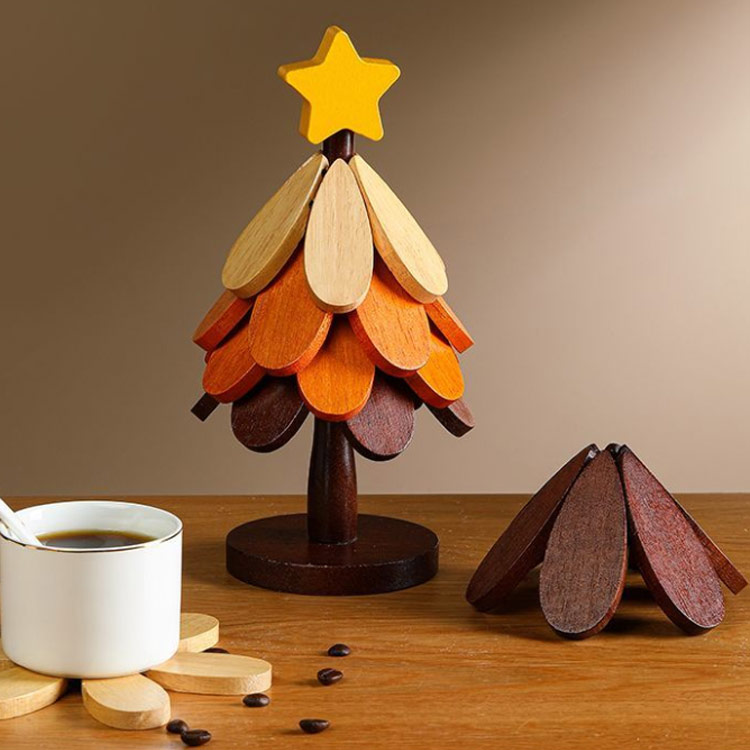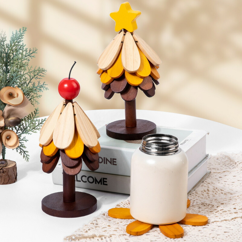 置物 クリスマスツリー クリスマスツリー型 ツリー 卓上 木製ツリー クリスマス 鍋敷き オブジェ 5枚セット 飾り 卓上ツリー コースター 花モチーフ カッ ミニツリー