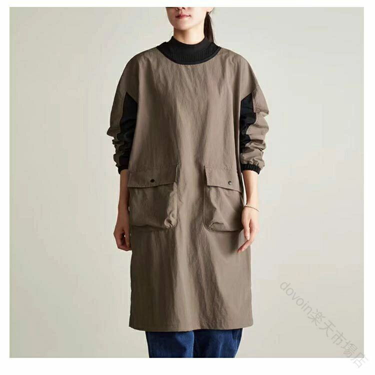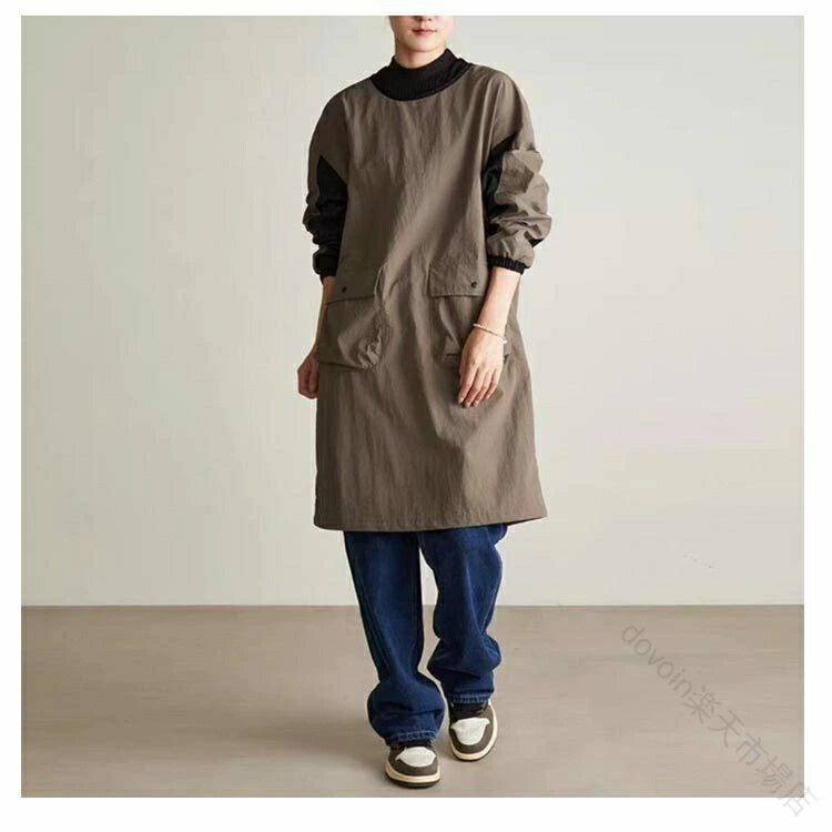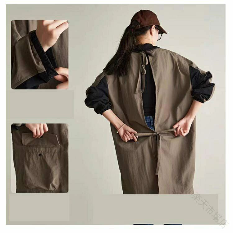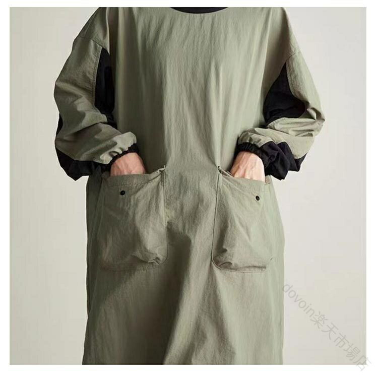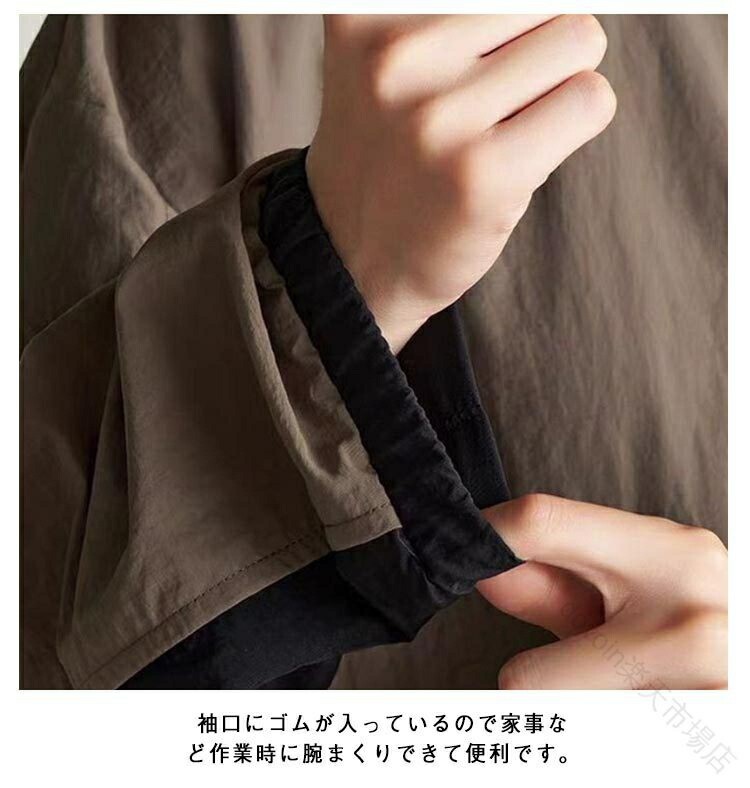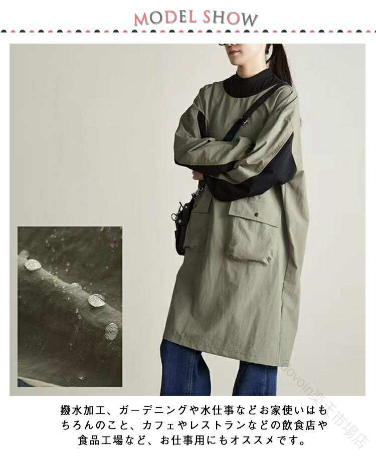 軽い おしゃれ かっぽう着 割烹着 レディース メンズ エプロン 撥水 長袖 薄手 ロング丈 軽量 無地 カジュアル おしゃれエプロン 保育士 看護師 作業服 キッチン DIY 汚れ防止 便利 手芸
