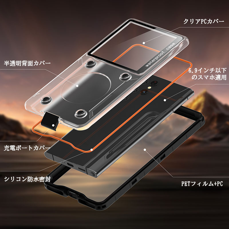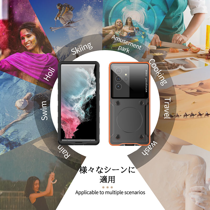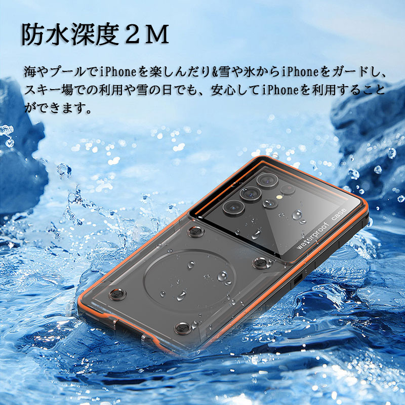 最大2mまで水中で完全封鎖!防塵、防雪、防埃、耐衝撃!海、プール、ダイビング、キャンプ、スキー・スノボ、アウトドア、お風呂、雨の日、どんなシーンでもスマホをフタに守ります。