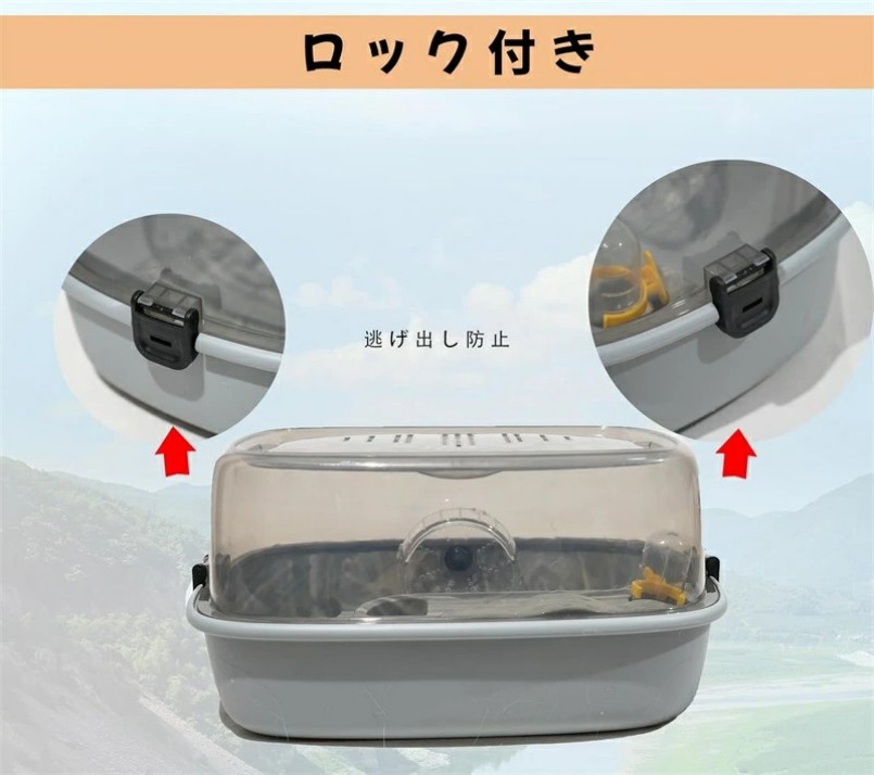 セキュリティ機能 製品にはしっかりとしたロック機能が搭載されており、ハムスターが自力でケージから脱走するのを確実に防ぎます。これにより、飼い主が不在の時でも安心して飼育することができます