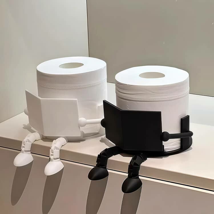 本を読む姿が愛らしい、ユニークなデザインのトイレットペーパーホルダー。
