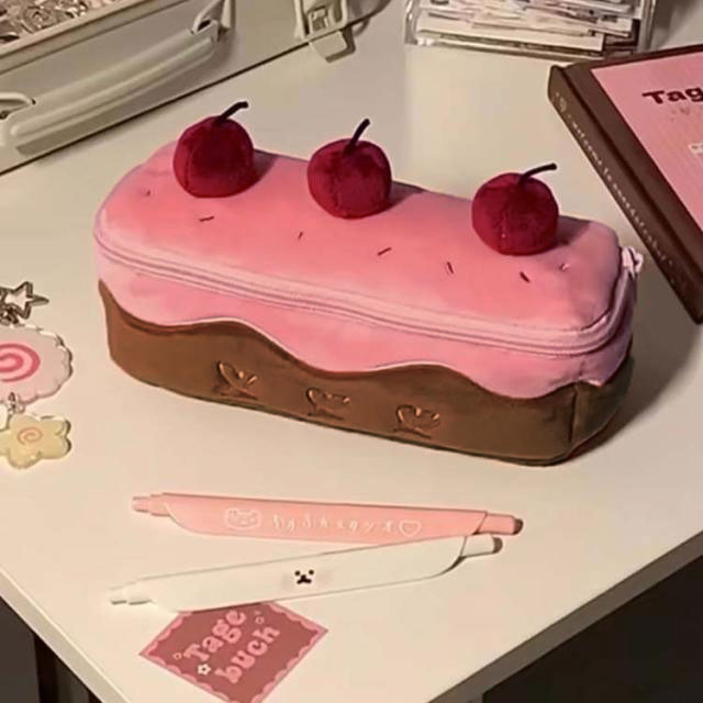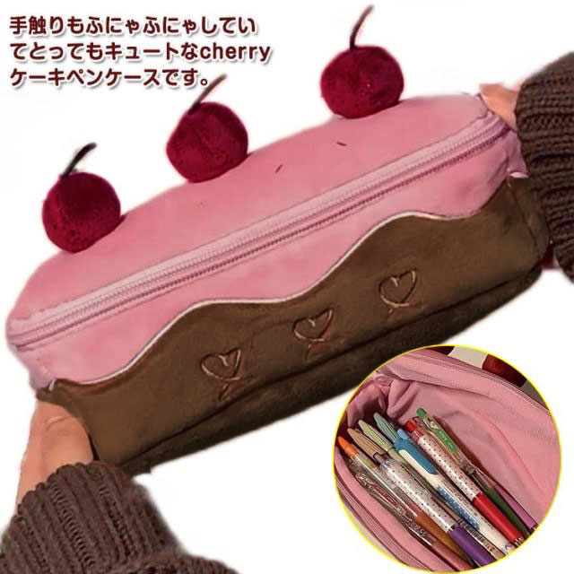 ペンケース 筆箱 大容量 レディース キッズ もこもこ 母の日 可愛い ポーチ 収納 多機能 cherry ケーキ 中学 高校 大学生 女子 小学校 筆入れ ケース かわいい コス 化粧ポーチ