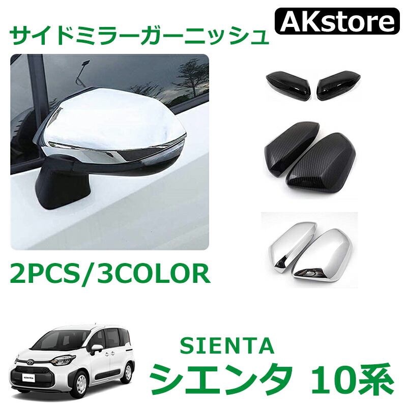 トヨタ 新型シエンタ 10系 パーツ アクセサリー サイドドアミラーカバー サイドミラーガーニッシュ 汚れ防止 傷防止 簡単取付 鏡面仕上げ ピアノブラック カーボン調 2pcsセット