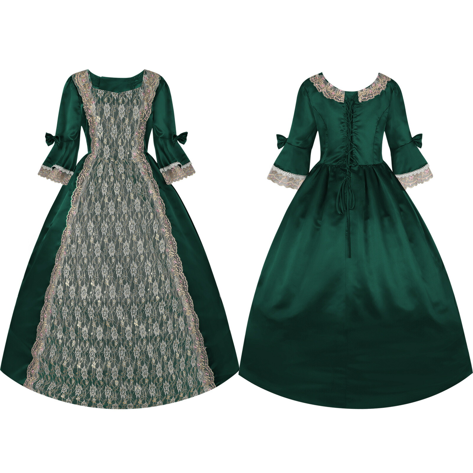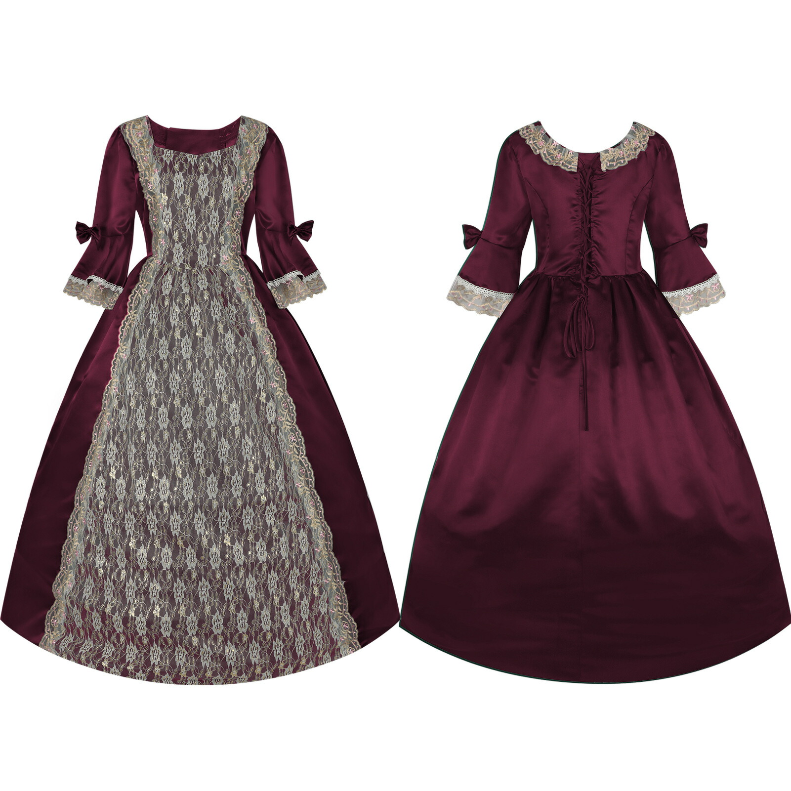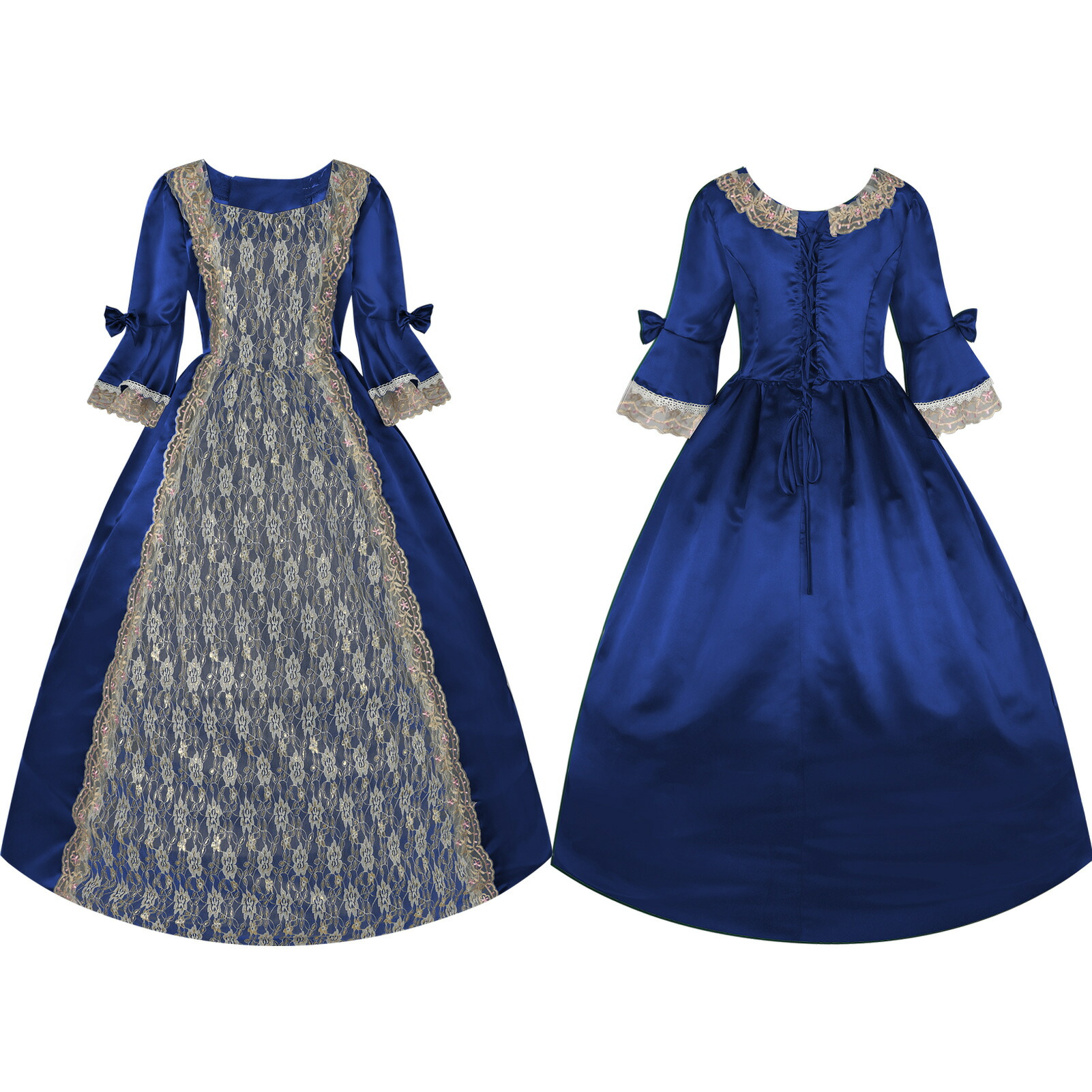 宮廷風 レディースワンピース ロリータ コスプレ衣装 レトロドレス 礼服 欧風 中世風 フレア袖 レース裾 貴族風 コスチューム衣装 大人用 ハロウィン衣装 変装 パーティー イベント 舞台劇 仮装