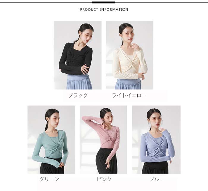 バレエ 長袖 トップス キャミソール S M L XL 2XL ブラック ライトイエロー ブルー グリーン ピンク