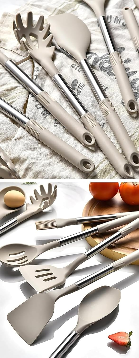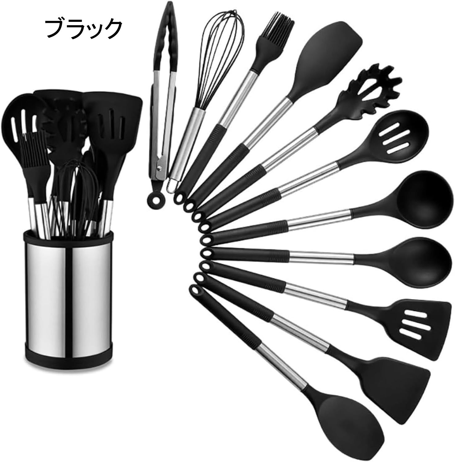 キッチンツールセット シリコン 調理器具 11点セット シリコン台所用品セット クッキングツール 器具 キッチン用品セット 耐熱シリコン ステンレス鋼ハンドル 台所用品 スパチュラ スプーン ブ 調理