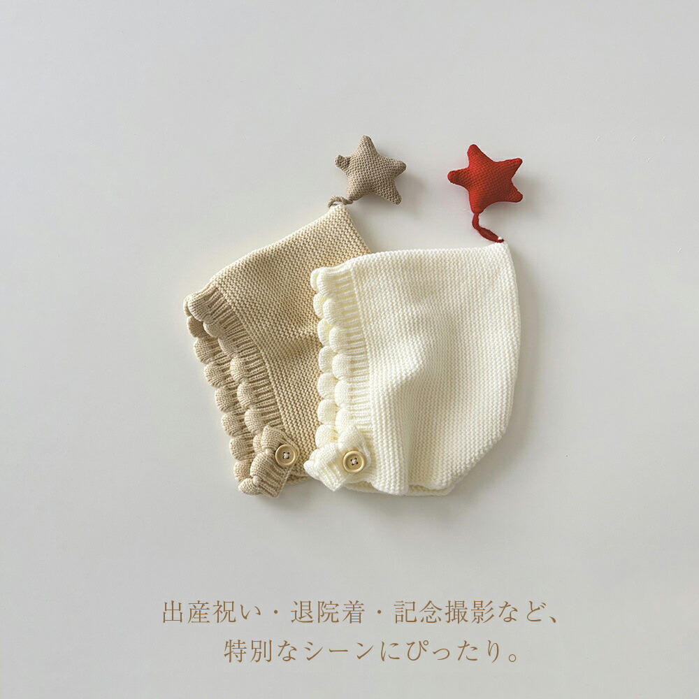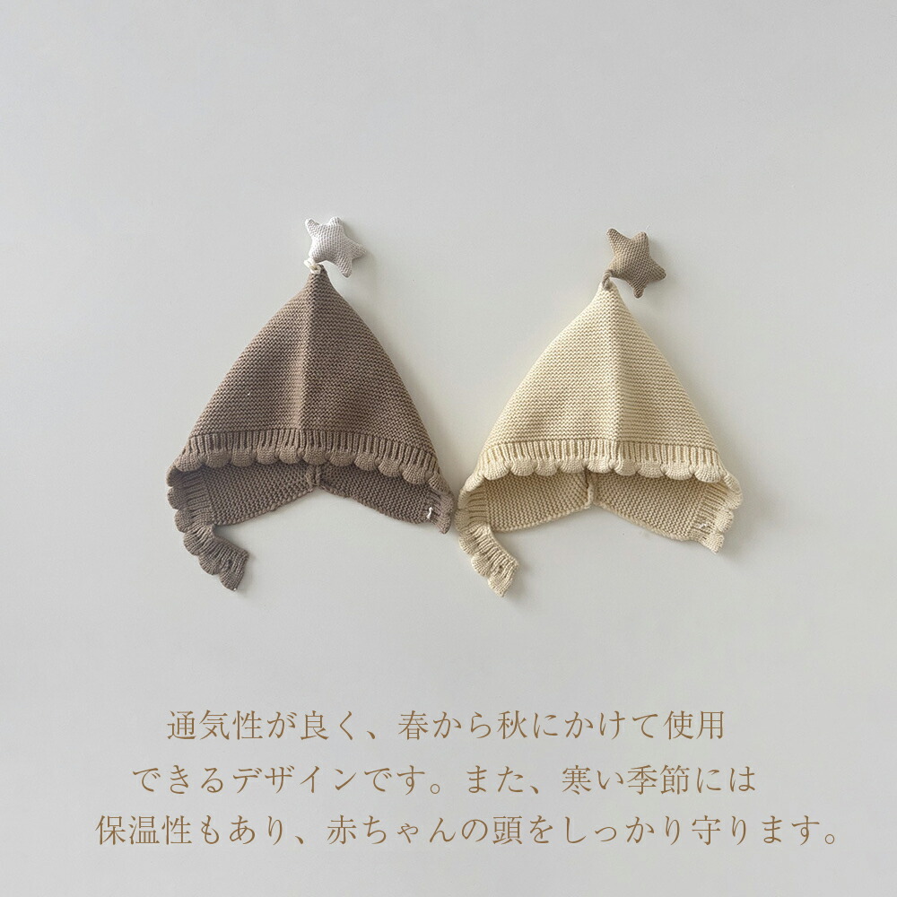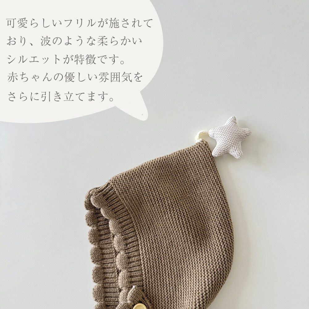 ベビー ニットボンネット 新生児 退院 ベビー ベビー服 ファッション 帽子 ニット帽 新作 アイボリー ベージュ ブラウン