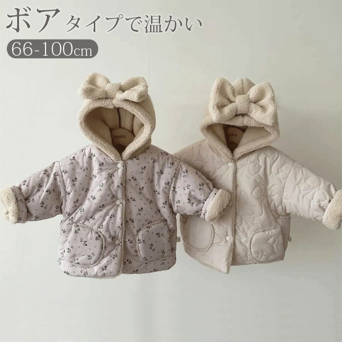 ボアコート キッズ ベビー 服 子供 ベビー ベビー服 ファッション コート ジャケット 早い者勝ち 花柄ピンク 無地ベージュ 66cm 73cm 80cm 90cm 100cm