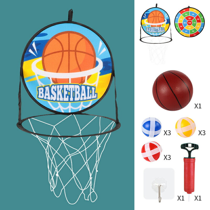 バスケットゴール 子供用 室内 屋外 おもちゃ ダーツボード ゲーム ダーツ 粘着ボール 家庭用 壁掛け式 バスケットボール付き ストレス解消 成長に促進 空気入れ 付き 折り畳み 取付簡単