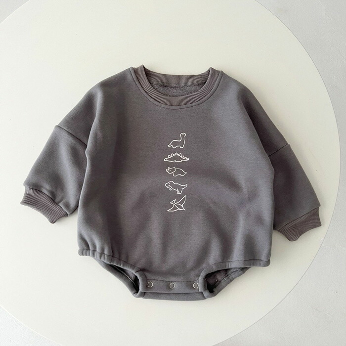 恐竜柄トレーナーロンパース 赤ちゃん キッズ ベビー マタニティ 通販 アイボリー グレー 66cm 73cm 80cm 90cm 100cm