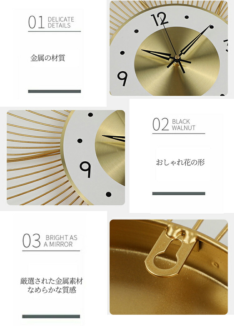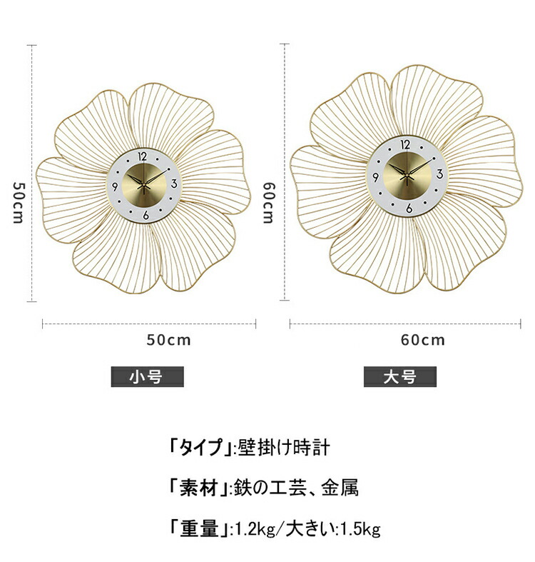 壁掛け時計 掛け時計 花の形 おしゃれ ゴールド 50cm ホワイト 50cm ゴールド 60cm ホワイト 60cm