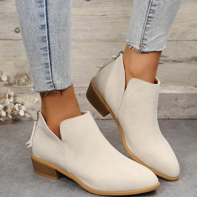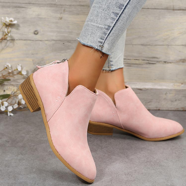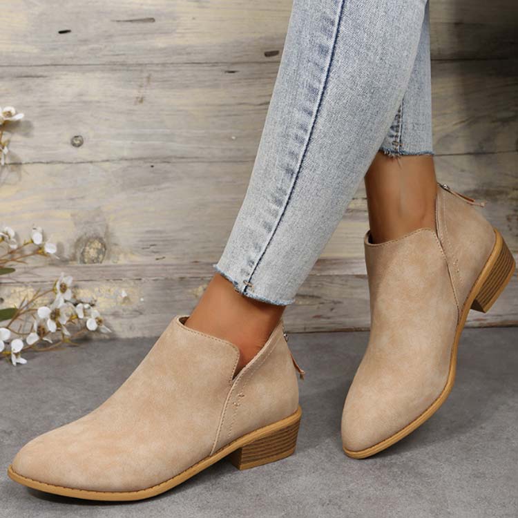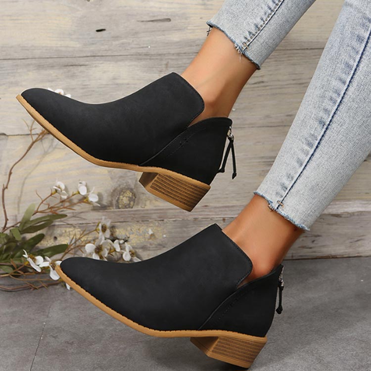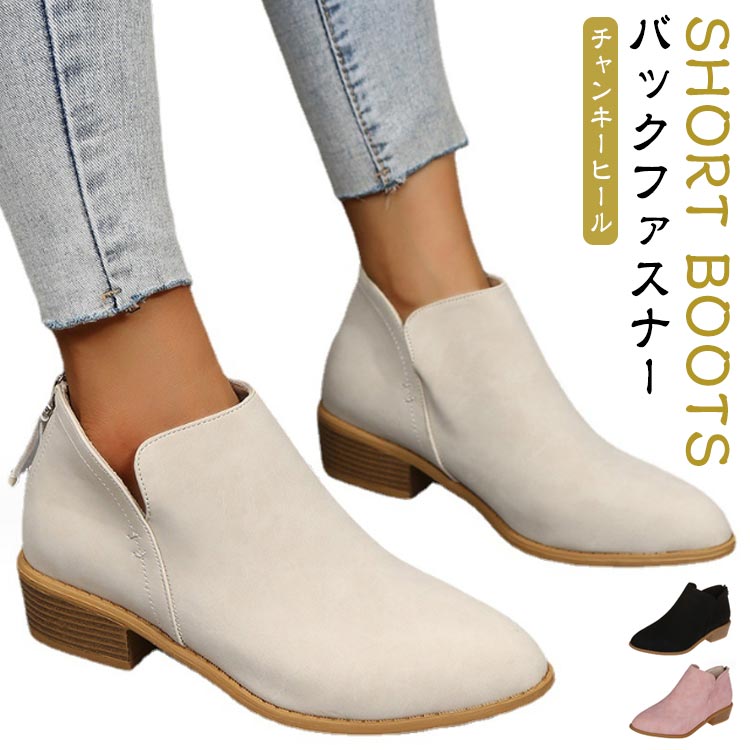 歩きやすい ブーツ ローヒール ショートブーツ レディース ファスナー付き 夏ブーツ スエード アンクルブーツ 疲れない バックファスナー バックジップ ポインテッドトゥ 太めヒール ブー ブーティー