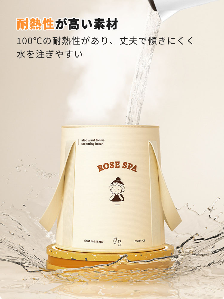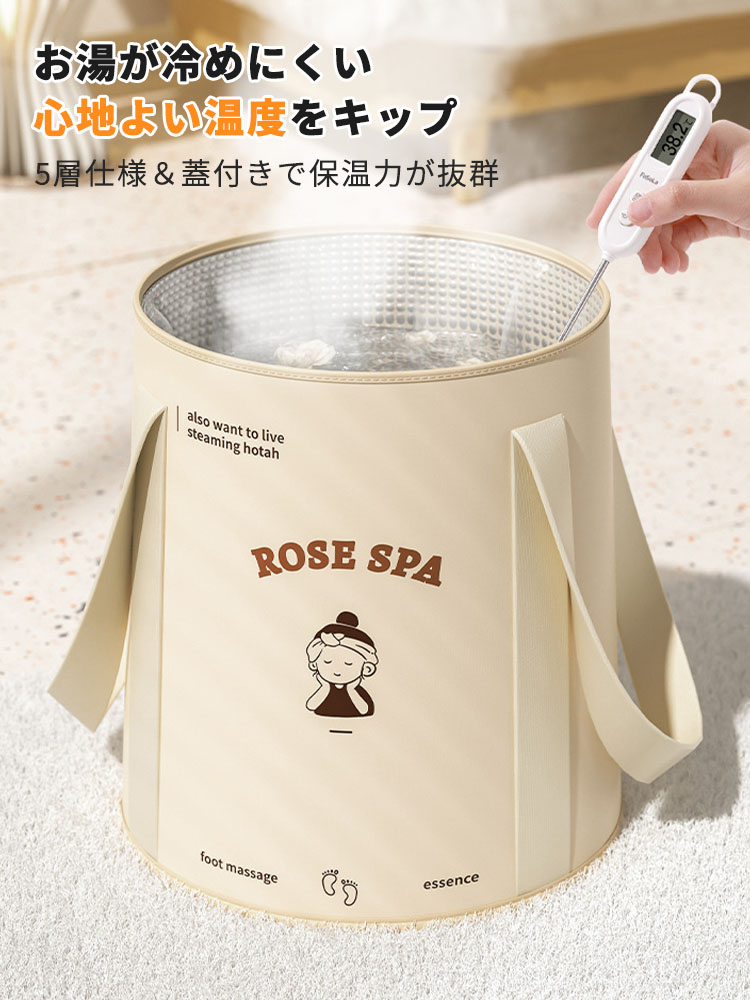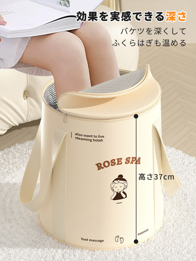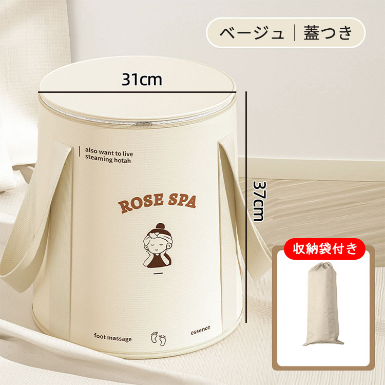 足湯 バケツ 折りたたみバケツ フット ベージュ ピンク 蓋つき 膝を覆う