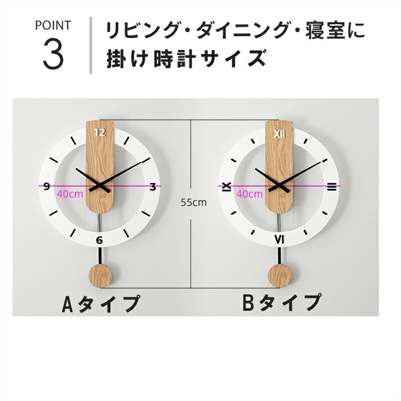 壁掛け時計 非電波時計 掛け時計 振り 数値+スケール ローマ数字+スケール