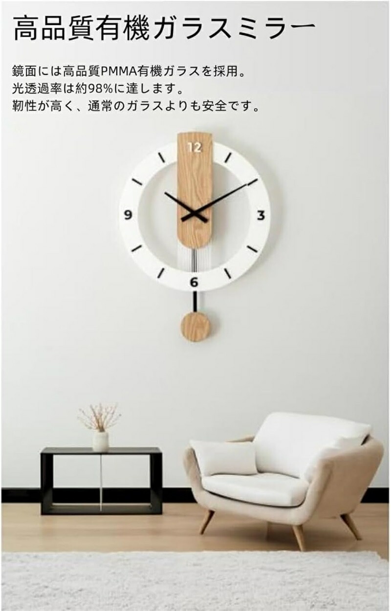 シンプルでおしゃれなデザイン 北欧テイストでおしゃれな壁掛け時計で、木の温もりが感じられます。