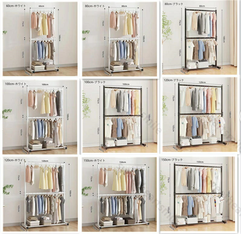 ハンガーラック 幅60-120cm 2 ブラック ホワイト 幅60cm 幅80cm 幅100cm 幅120cm 幅150cm