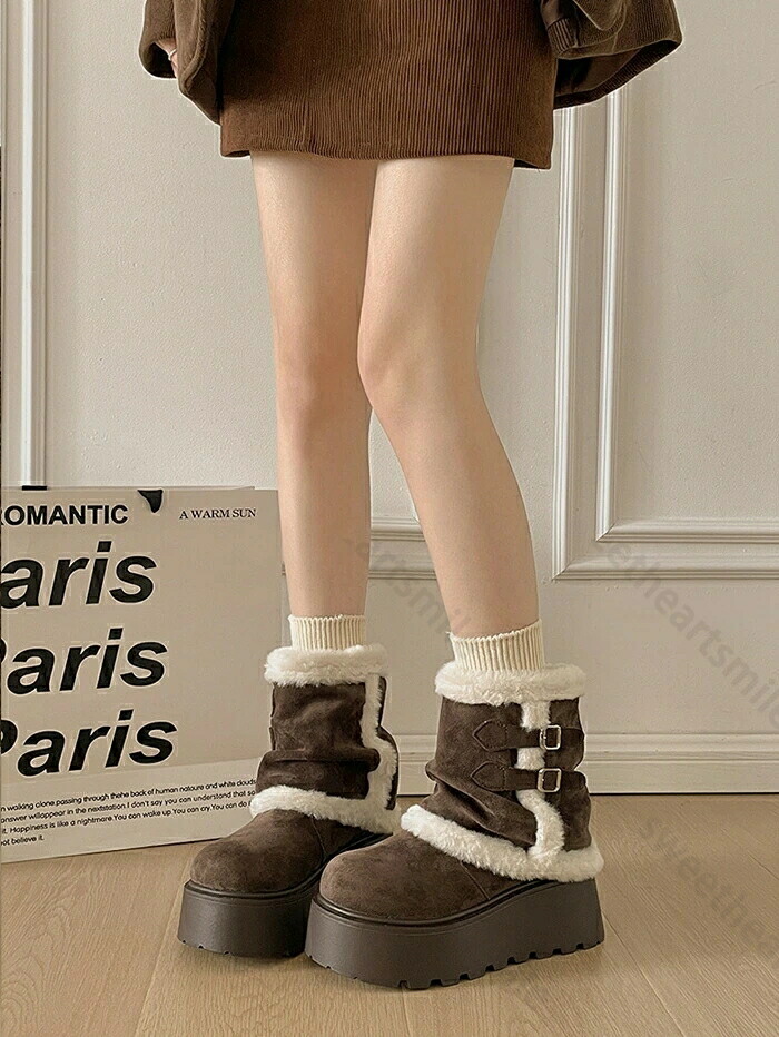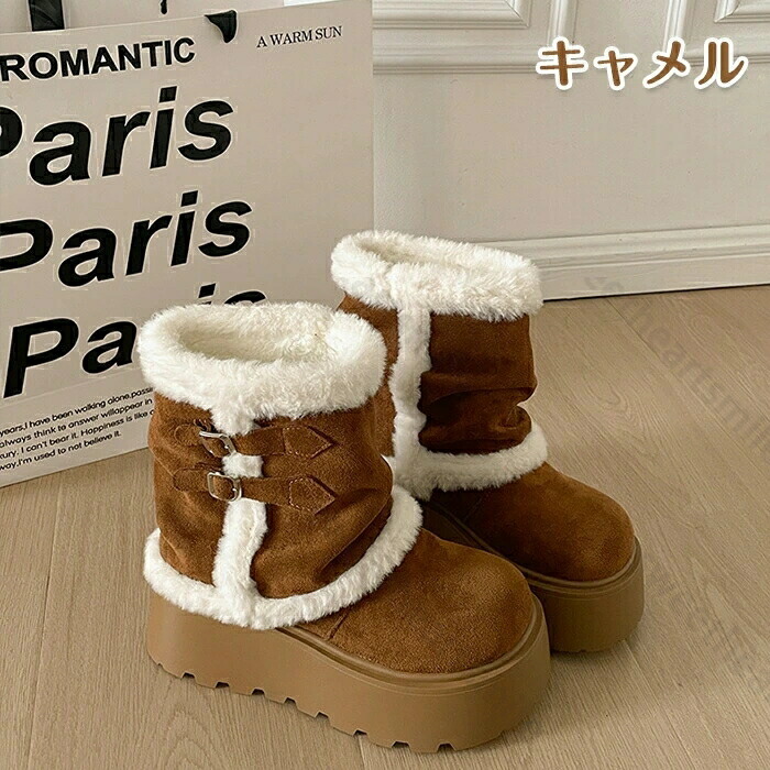 ブーツ 厚底ブーツ ショートブーツ 雪 レディース靴 ブーツ ムートンブーツ 続々入荷中 ベージュ キャメル ブラウン 35(内寸22.5cm) 36(内寸23cm) 37(内寸23.5cm) 38(内寸24cm) 39(内寸24.5cm) 40(内寸25cm)
