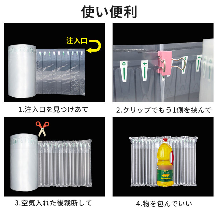 業務用 エアー緩衝材巻き 隙間埋め エアチューブ エアクッション エアパッキン 梱包材 パッケージ 包装 プチプチ ジャム 電子機器 壊れ物 エアキャップ 瓶