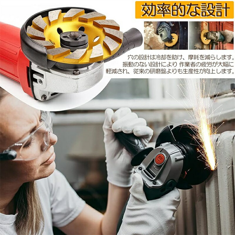 ディスクグラインダーにセットして使用するダイヤモンドカップホイールです。対象物を面で研磨しなめらかに仕上げます。ご家庭でのDIYから、業務用まで幅広い用途で使用できます。