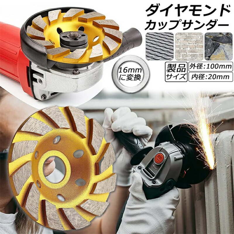 ダイヤモンド カップ サンダー 4個 100mm 穴径 20mm ダイヤモンドカップホイール 研磨 研削 切断 ディスク グラインダー ホイール カップサンダー ブレード レンガ 石材 コン モルタル