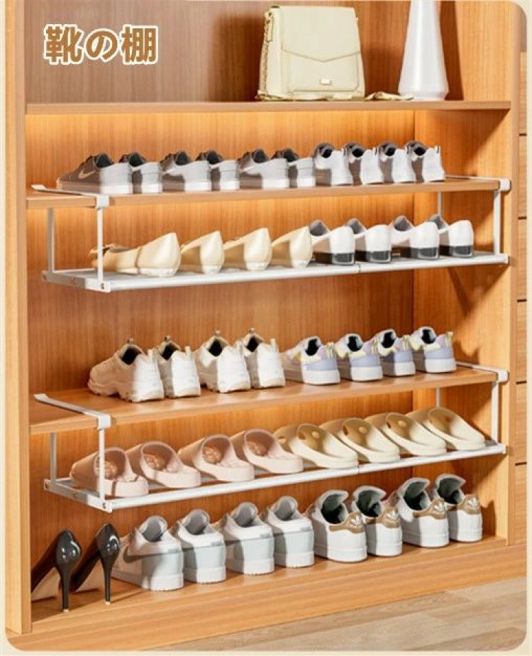 浮かせるシューズラック 浮かせる伸縮シューズラック 伸縮式靴掛け 玄関 靴収納 シューズラック 靴箱 靴棚 シューズクローク 省スペース 狭い 伸縮 下駄箱 ラック 靴箱下 下駄箱下 靴