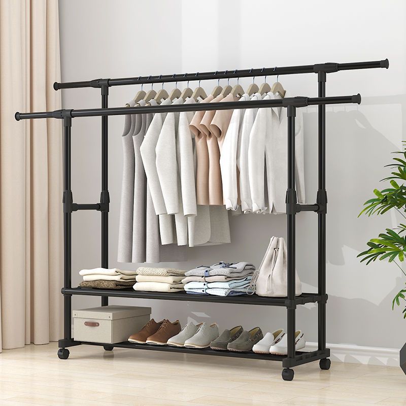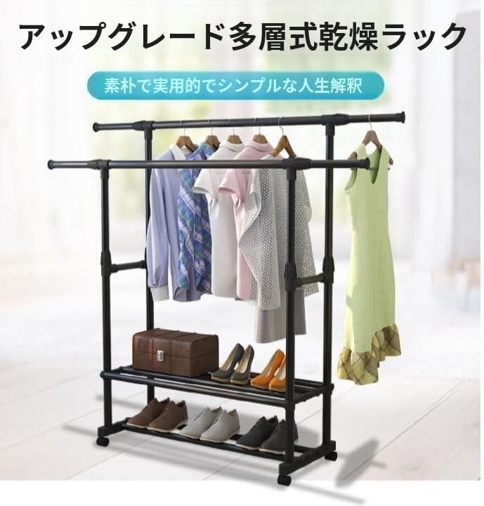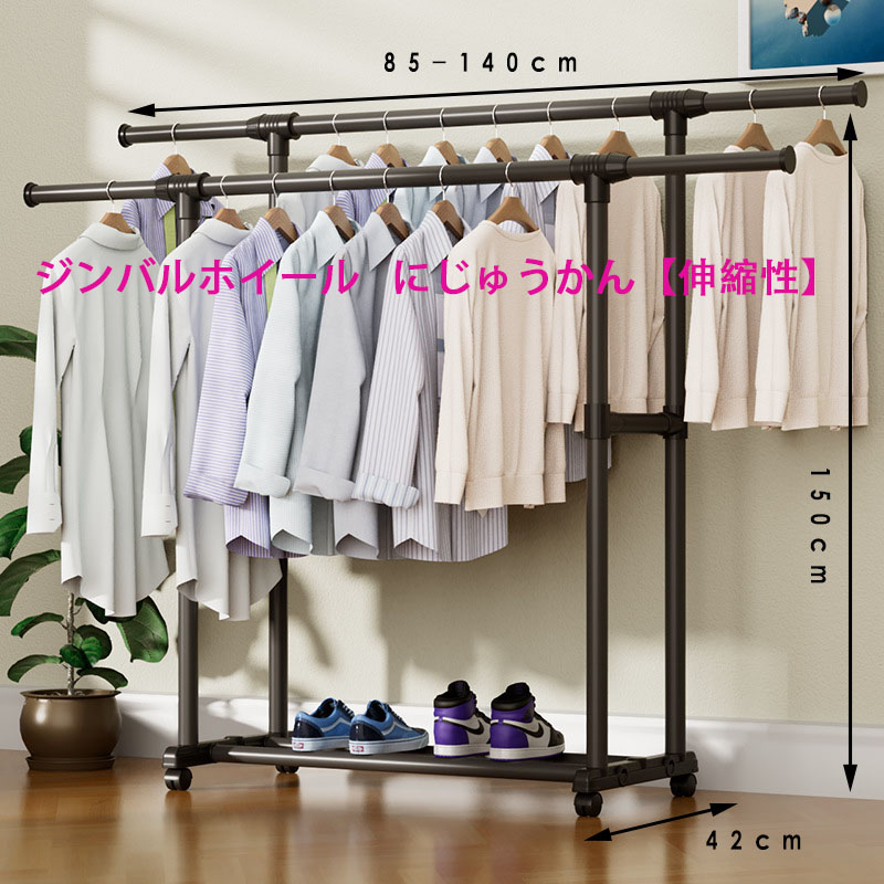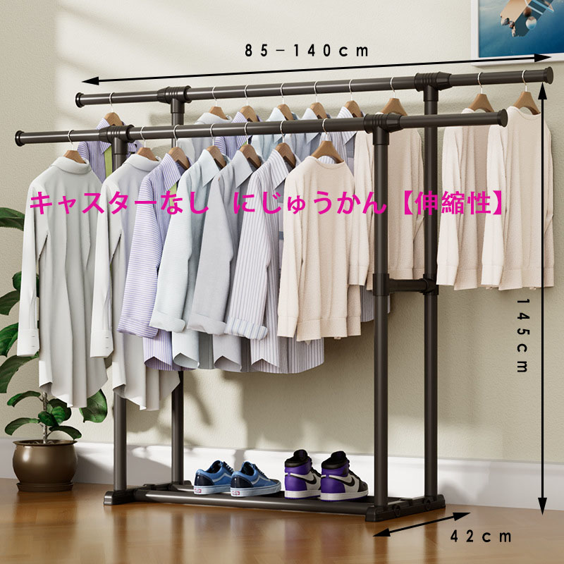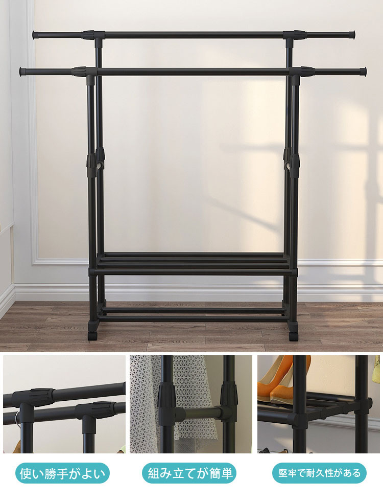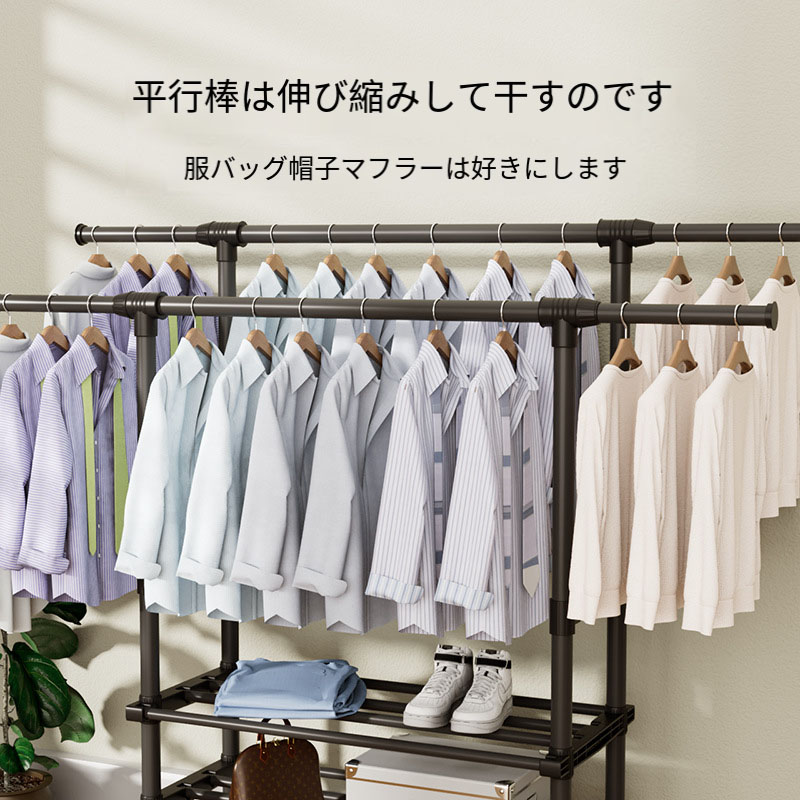ハンガーラック 高さ伸縮パイプ 室内物干し ダブル パイプハンガー クローゼット コートハンガー 衣類ラック おしゃれ コート掛け 省スペース 衣類収納 防サビ 耐腐食性 ダブルポール式 下駄箱 防水