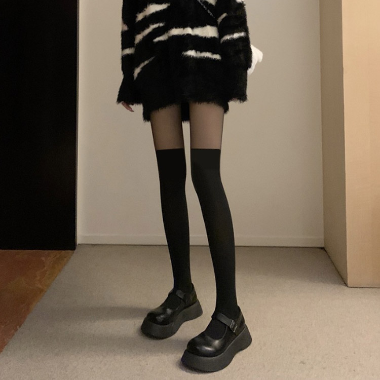 オールインワンのソックス風ストッキングで落ちないニーハイ!