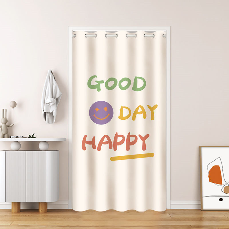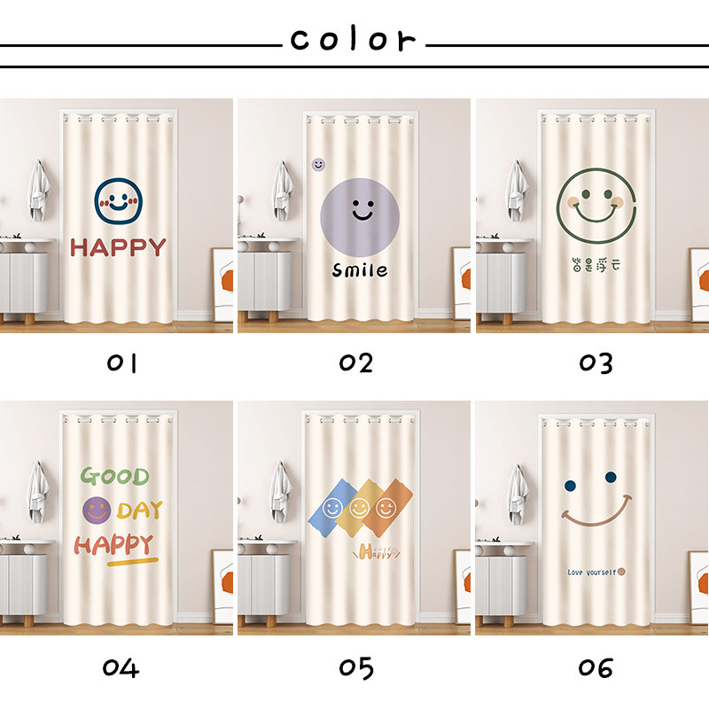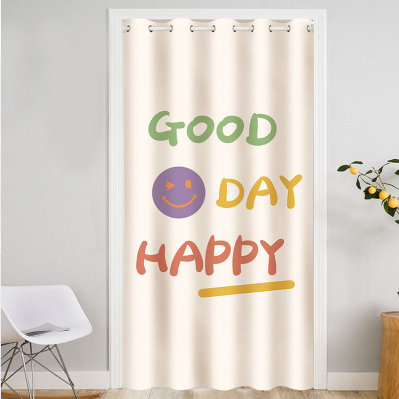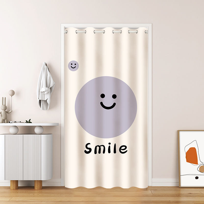 間仕切りカーテン おしゃれ 笑顔 カーテン 突っ張り棒 かわいい 柄 簡約 のれん ロング 遮光 冷気遮断 目隠し キッチン 仕切り 穴不要 洗える 寝室