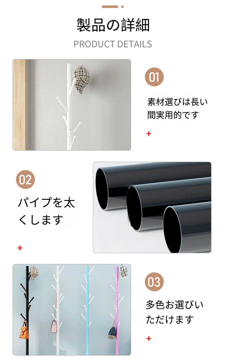 【組み立てが簡単】:コート掛け 衣類ハンガーの構造は非常に簡単で、部品を組み立てた後、接続部分をネジで締めるだけです。コートハンガー 女性でも簡単に組み立てられます!