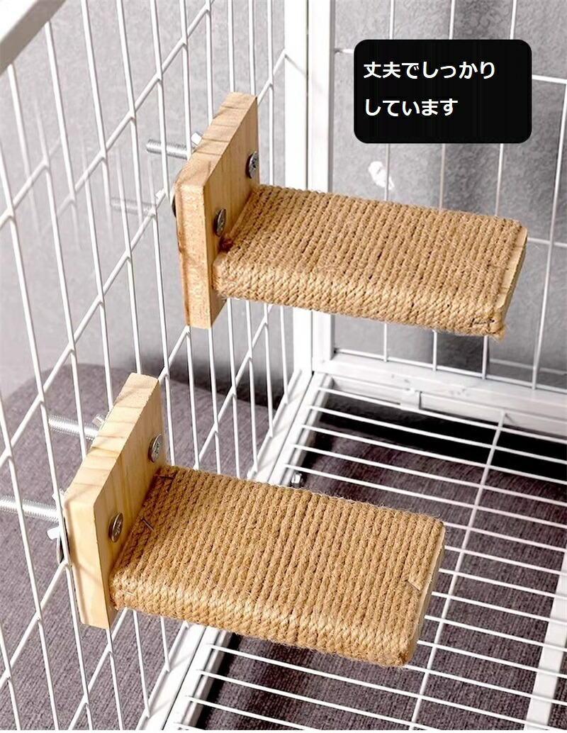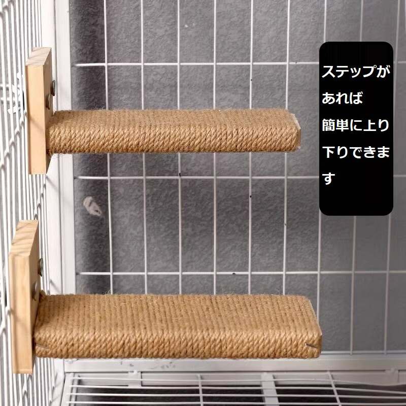 猫 ケージ用ステップ 階段 取付簡単 猫用ステップ 爪とぎ 麻紐 滑り止め付 ステップ補助 木製ステップ