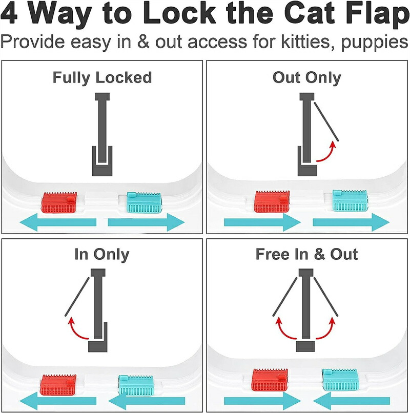 取り付け簡単 愛犬専用のペットドア ペット用扉 犬猫出入り口 ロック、フリー、出、入の4種切替 自由自在 猫犬用 小型犬用 ペット用品 犬猫の出入り口に最適