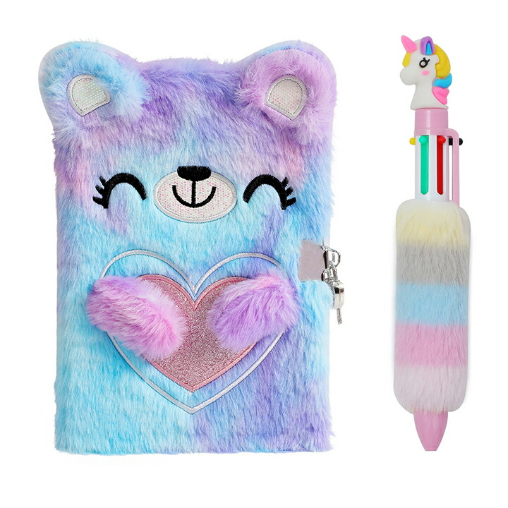 小熊 日記帳ボールペンセット A5 鍵 マルチカラー パープル