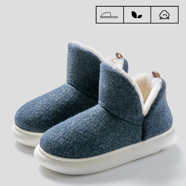 裏ボア仕様なので、つま先から足首まであったか。ブーツタイプのスリッパなので、足首の冷えもしっかりカバーできます。ソール素材をへたりにくく丈夫な素材に見直したので、床からの冷えが伝わりにくくなりました。