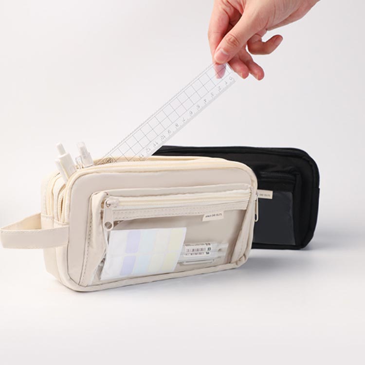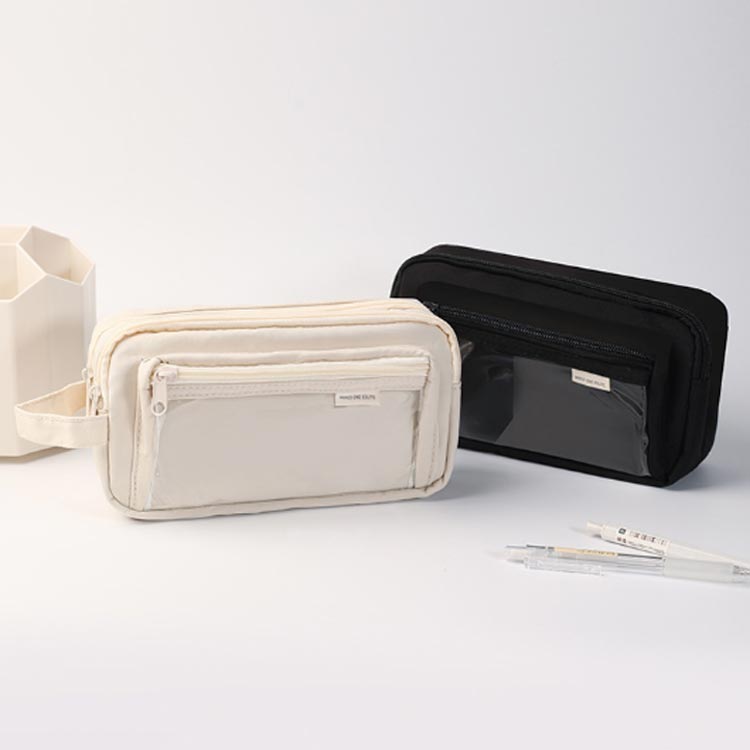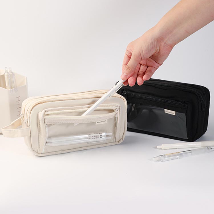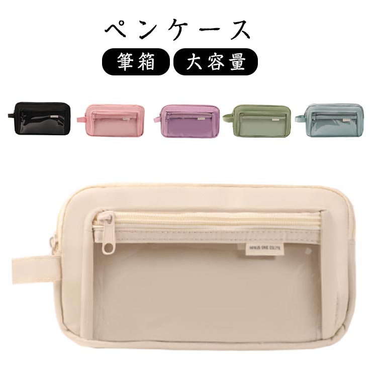 ペンポーチ 男子 シンプル 透明ポケット 持ち手付き 学生 ペンケース 収納整理 小学生 中学生 高校生 多機能 大容量 筆箱 軽量 丈夫 学校 通学 かわいい おしゃれ 無地 ファスナー