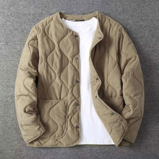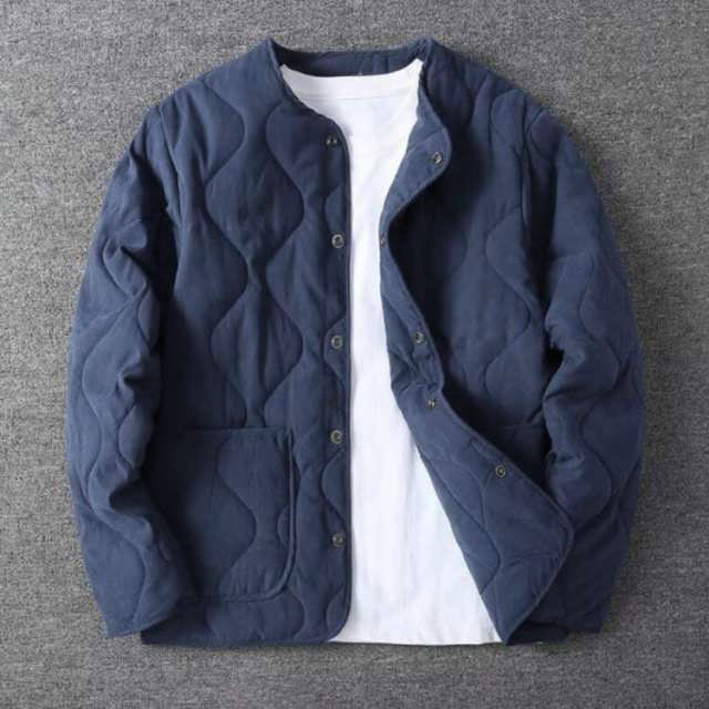 ノーカラーキルティングジャケット ブル メンズファッション 新作 ベージュ カーキグリーン ネイビー M L XL 2XL 3XL