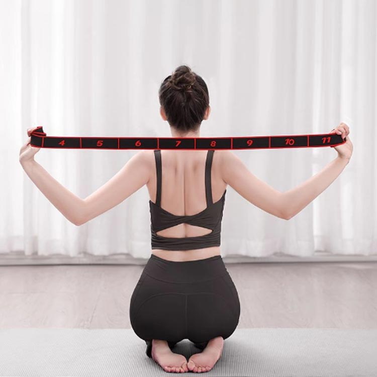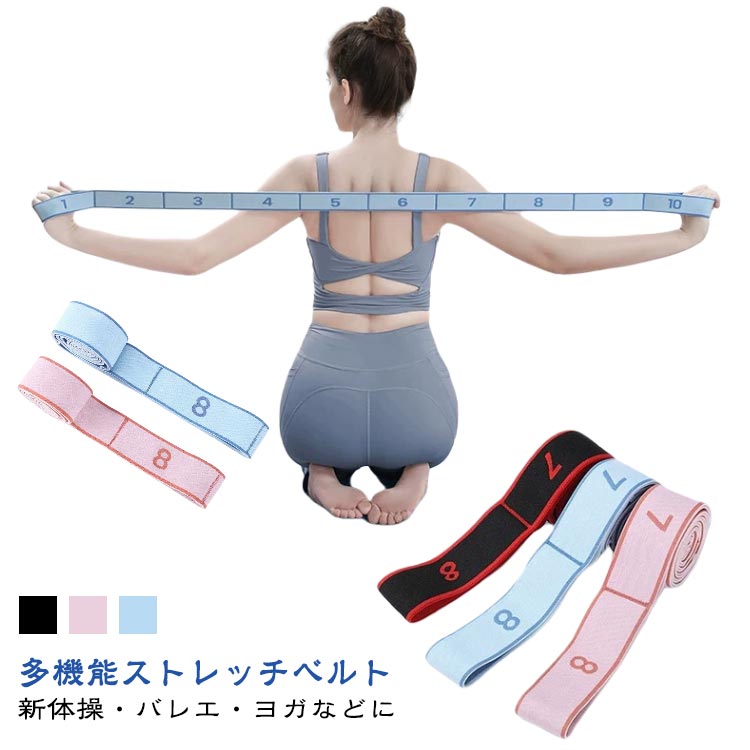 ヨガ ベルト ストレッチバンド 多機能 ブラック ピンク ブルー 8マス 10マス 12マス
